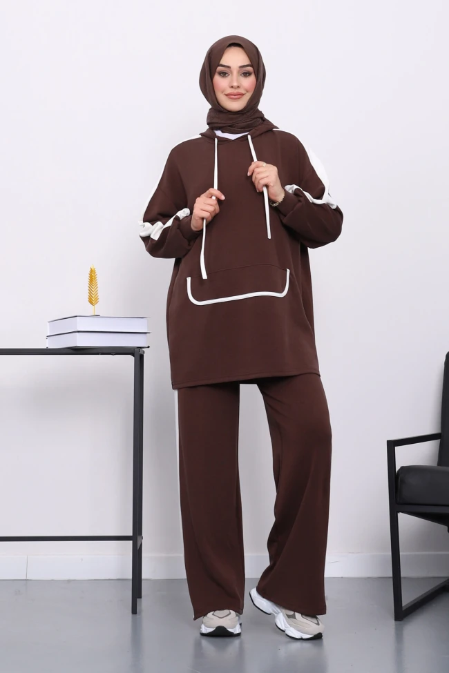 Bordo Kapüşonlu Renk Bloklu Tunik Pantolonlu Takım Haki Kapüşonlu Renk Bloklu Tunik Pantolonlu Takım Koyu Bordo Kapüşonlu Renk Bloklu Tunik Pantolonlu Takım