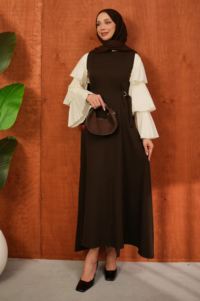 * Ürün Detay : Renklerin en asil hali yeni sezon jile modelimiz ile buluşuyor.Jilemiz modern modest moda anlayışını oldukça şık ve dengeli bir şekilde yansıtıyor.Yanlardaki metal halka ve bağlama detayı, jilenin dümdüz inmesini engelleyerek beli zarifçe vurguluyor. Bu, vücut formunu daha dengeli gösteren bir "A-kesim" etkisi oluşturmuş.