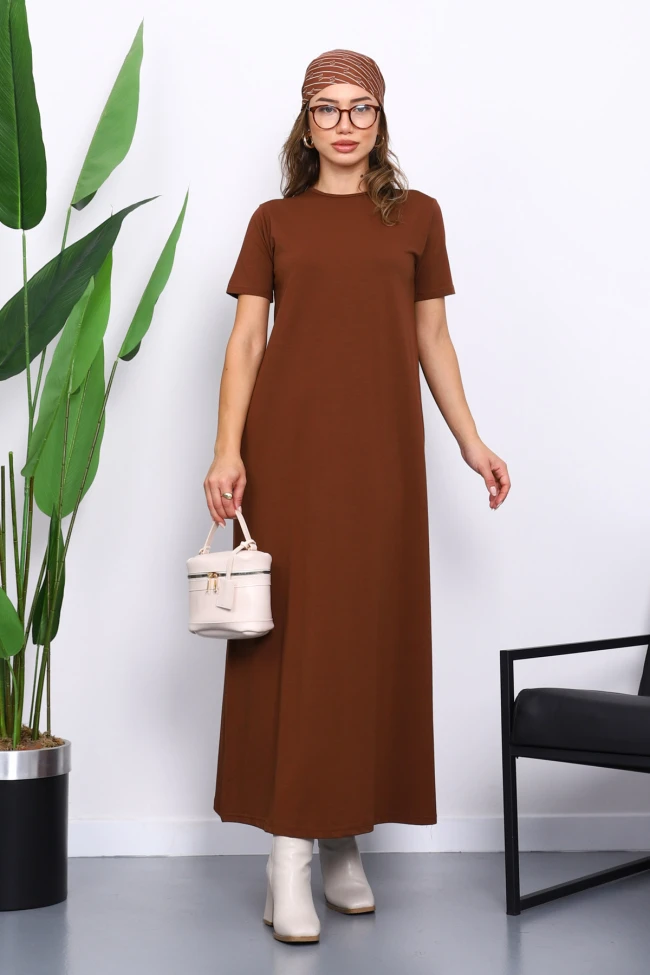 Bej Kısa Kol Tesettür İçlik Elbise Siyah Kısa Kol Tesettür İçlik Elbise
