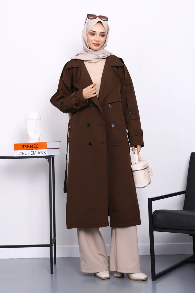 Lacivert Kruvaze Yaka Astarlı Trençkot Siyah Kruvaze Yaka Astarlı Trençkot Haki Kruvaze Yaka Astarlı Trençkot