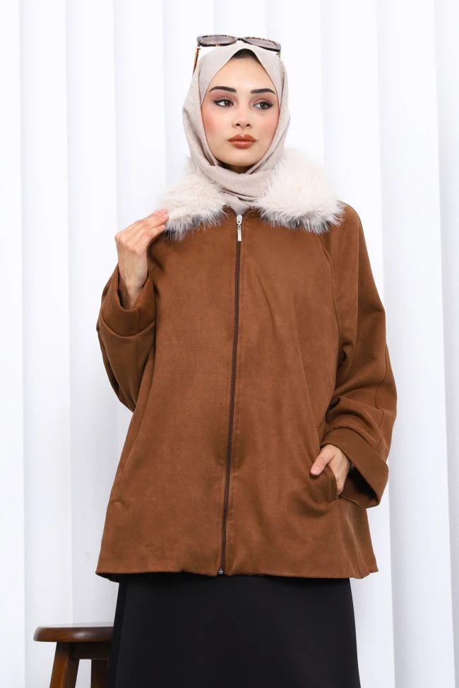 * Ürün Detay : Ürünümüz Süet Kumaştan Üretilmiştir. Ön kısmı fermuarlı ve yaka kısmı kürk detaylıdır.