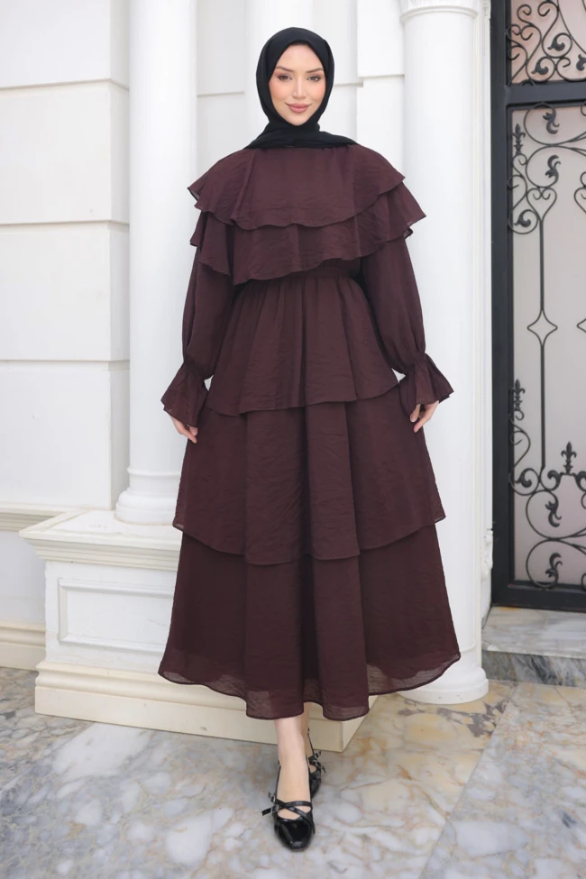 * Ürün Detay : Elbise, katlı tasarımıyla modern tesettür giyimde "çabasız şıklık" arayan hanımlar için tam bir odak noktası. Hem romantik detayları hem de uçuş uçuş formuyla, gardırobunda bahar enerjisini taşımak isteyen kadınların ilk tercihi olacak.Büzgülü bel yapısı, konforu ön planda tutarken vücut formunu orantılı bir şekilde ortaya çıkarıyor.