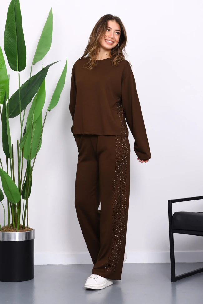 * Ürün Detay : Ürünümüz Modal kumaştan üretilmiştir. Sweat ile Pantolon ikili takım şeklindedir. Pantolon bel kısmı lastikli ve taş detayları yer almaktadır. Cep detaylıdır.