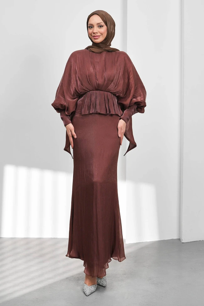 Taş Yarasa Kol  Katlı Janjan Abiye Lacivert Yarasa Kol  Katlı Janjan Abiye Siyah Yarasa Kol  Katlı Janjan Abiye Haki Yarasa Kol  Katlı Janjan Abiye Bordo Yarasa Kol  Katlı Janjan Abiye