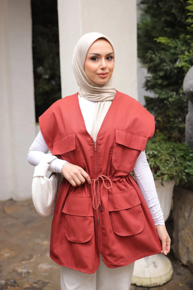 * Ürün Detay : Özellikle geçiş mevsimleri için tasarlanmış, işlevsel ve modern bir parça olarak öne çıkıyor.Üzerindeki dört adet büyük kapaklı cep, yeleğe hem maskülen bir hava katıyor hem de son yılların popüler işlevsel giyim trendine hitap ediyor.Belden büzgülü ve ayarlanabilir ipli yapısı, oversize duruşu bozmadan vücut formuna göre ayarlanabilmesine olanak tanıyor.
