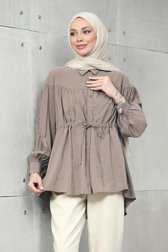 * Ürün Detay :Tunik, özellikle ilkbahar ve yaz ayları için hem ferah hem de stil sahibi bir seçenek sunuyor.Tunik, asimetrik bir kesime sahip. Bu detay, hem modern bir hava katıyor hem de ekstra kapatıcılık sağlıyor.Göğüs altındaki büzgü detayları ve beldeki ince bağcık, tuniğin formunu kişiselleştirmene olanak tanıyor.Balon kol yapısı ve manşetler, parçaya feminen ve hareketli bir dokunuş eklemiş.