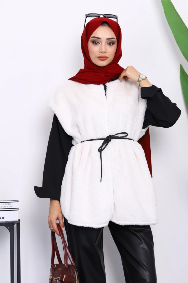 * Ürün Detay : Ürünümüz Suni Kürk Kumaştan Üretilmiştir. Bel kısmı kuşaklıdır.