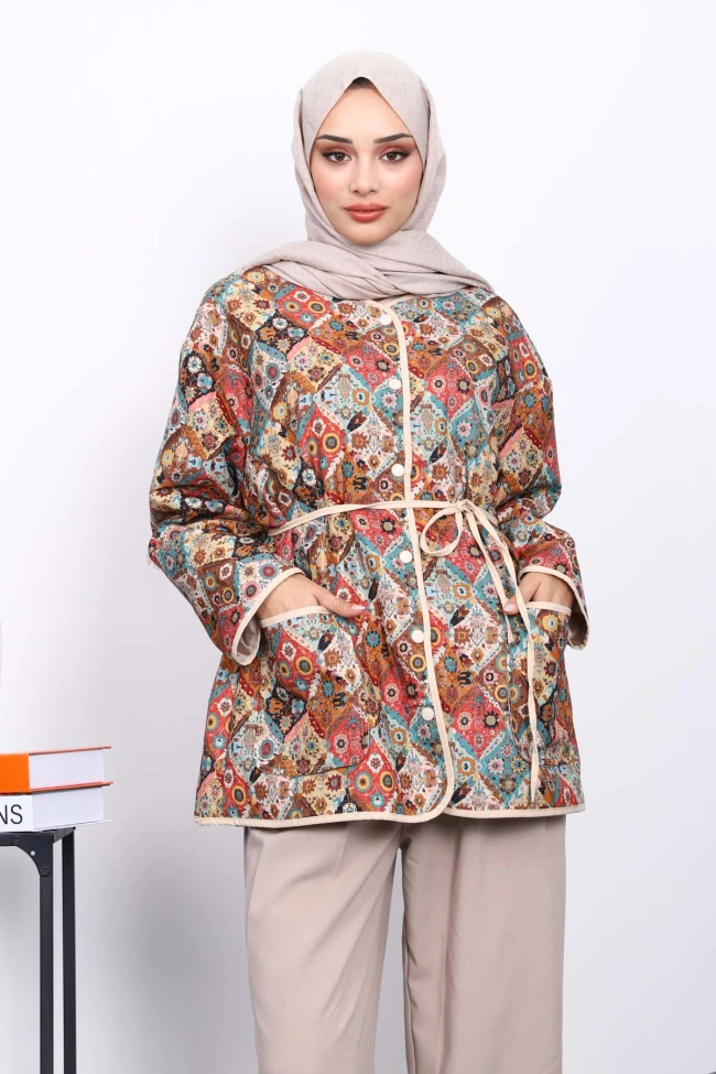 Vizon Desenli Çıtçıtlı Ceket