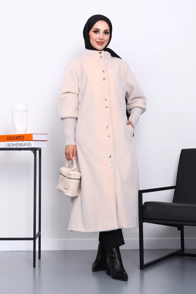 Siyah Düğmeli Kolları Triko Angora Kaban Kahverengi Düğmeli Kolları Triko Angora Kaban Bordo Düğmeli Kolları Triko Angora Kaban