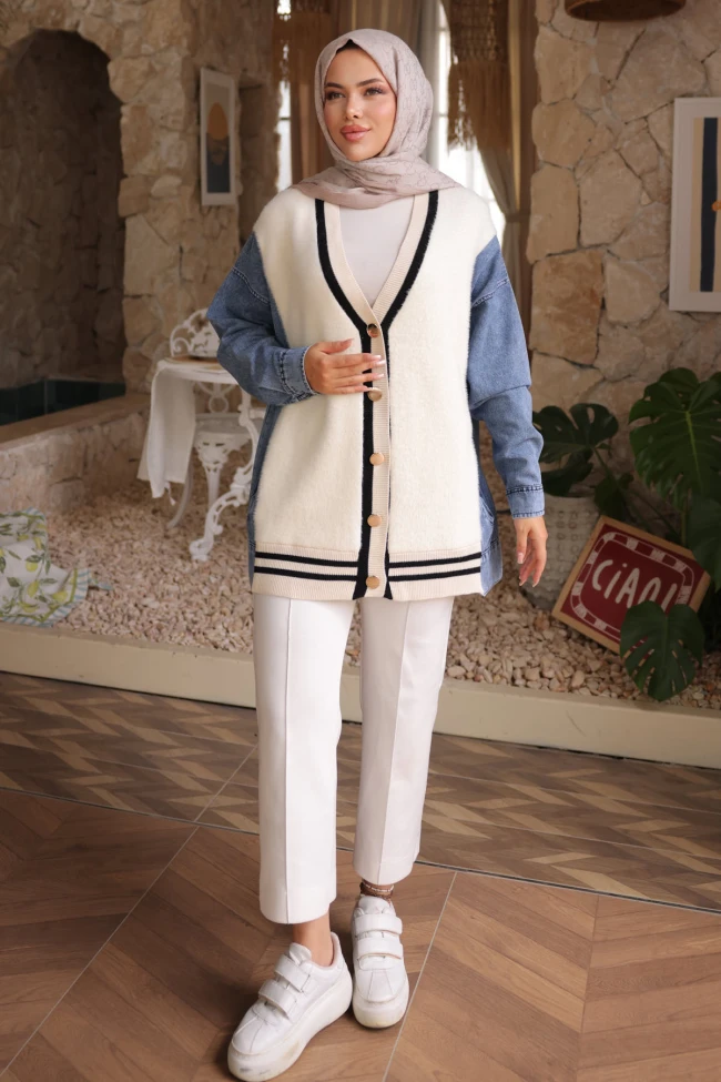 * Ürün Detay : Ürünümüz yeni sezona uygun Kot Garnili Yumoş Triko kumaştan üretilmiştir. Ön kısmı düğme detaylıdır. Kol kısımları kot garnilidir.