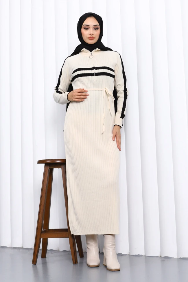 Siyah Yaka Fermuarlı Fitilli Çizgili Triko Elbise Füme Yaka Fermuarlı Fitilli Çizgili Triko Elbise Lacivert Yaka Fermuarlı Fitilli Çizgili Triko Elbise Bordo Yaka Fermuarlı Fitilli Çizgili Triko Elbise