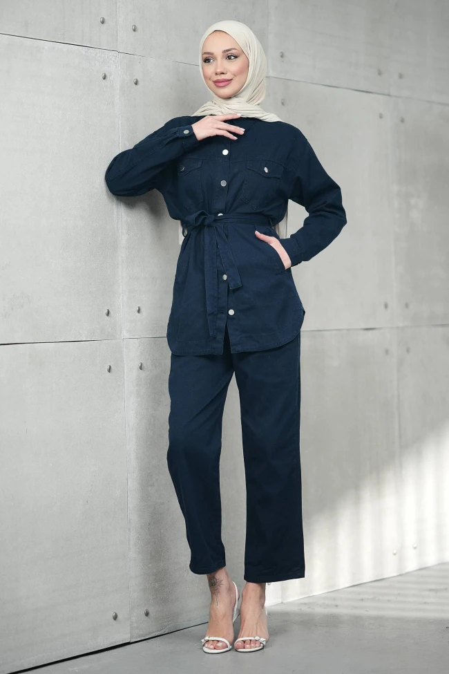 Siyah Bel Bağlamalı Cepli Ceket Pantolonlu Kot Takım Haki Bel Bağlamalı Cepli Ceket Pantolonlu Kot Takım Kahverengi Bel Bağlamalı Cepli Ceket Pantolonlu Kot Takım