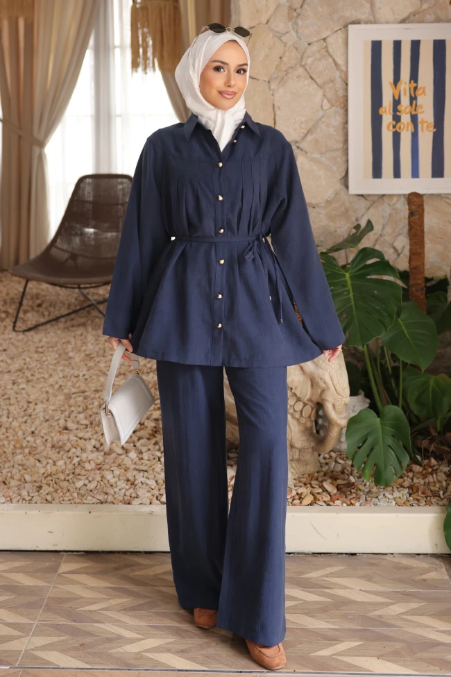 * Ürün Detay : Gardırobunuzun kurtarıcı parçası olmaya aday bu takım, hem ofis şıklığında hem de hafta sonu davetlerinde "ne giyeceğim?" derdine son veriyor.Tuniğin belden oturtmalı, aşağı doğru hafif genişleyen peplum kesimi, feminen bir silüet oluştururken aynı zamanda konforlu bir kullanım sunuyor. Pantolonun bol paça formu ise boyunuzu olduğundan daha uzun ve ince gösteren sihirli bir dokunuş sağlıyor.Pantolon bel lastikli ve ceplidir.