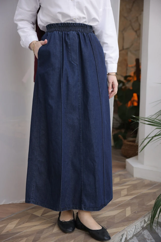 * Ürün Detay : Kot etek, klasiği modern ve konforlu detaylarla birleştiren çok kullanışlı bir parça. Hem tesettür giyim için ideal bir uzunluğa sahip hem de günlük giyimde çabasız şıklık vadediyor.Eteğin en belirgin özelliği belindeki lastik detayı. Bu detay, eteği hem çok konforlu hem de giymesi kolay hale getiriyor. Eteğin boyuna uzanan dikiş panelleri, eteğe hareketlilik ve modern bir yapı kazandırırken vücut hatlarını da daha uzun gösteriyor.
