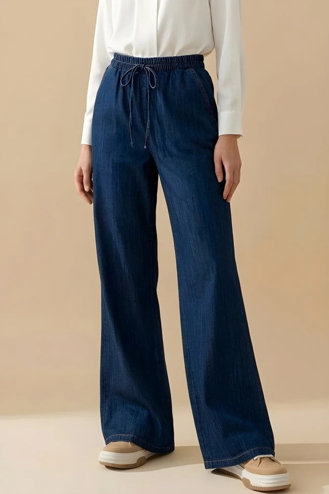 * Ürün Detay : Modern ve günlük bir tarz oluşturmak isteyenler için oldukça kullanışlı görünen kot pantolon modelimiz sizlerle.Yüksek beldir.Bel lastiklidir.Bağlama detaylıdır.Arkada cep yoktur.