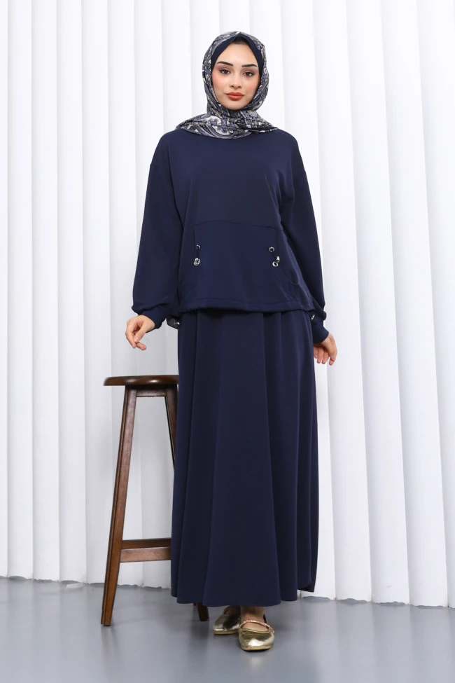 * Ürün Detay : Ürünümüz Pamuklu Modal Kumaştan Üretilmiştir. Bluz ile Etek ikili takım şeklindedir. Bluz ön ceplidir. Etek bel kısmı lastiklidir.