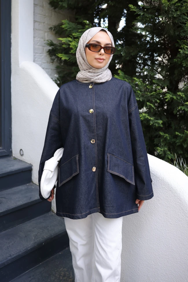 * Ürün Detay : Hem günlük hayatta hem de daha özel buluşmalarda kullanılabilecek, zamansız bir yatırım parçası.Ceket, modern ve klasik dokunuşları birleştiren oldukça şık bir parça.Ceketin geniş ve dökümlü kesimi, hem rahatlık sağlıyor hem de günümüzün sokak modasına çok uygun. Düşük omuz detayı bu çabasız şıklığı desteklemiş.Geniş kapaklı cepler hem fonksiyonel hem de görsel bir odak noktası oluşturmuş. Kontrast dikişler, koyu renk denim üzerinde kendini göstererek ceketin kalitesini vurguluyor.