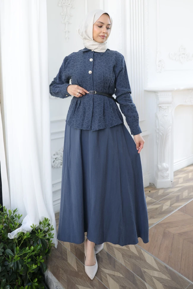 * Ürün Detay : Modern kesimi ve dokulu kumaş yapısıyla özel günlerinizden günlük şıklığınıza kadar her anınıza eşlik etmek için tasarlandı. Zengin renk tonu ve feminen detaylarıyla gardırobunuzun en özel parçalarından biri olacak.Peplum kesimli, belden oturtmalı ve şık metal düğme detaylıdır. İnce kemer detayı bel hattını zarifçe vurgular.İnce kemer detayı bel hattını zarifçe vurgular.Rahat hareket imkanı sunan, dökümlü ve geniş kesim uzun etek.