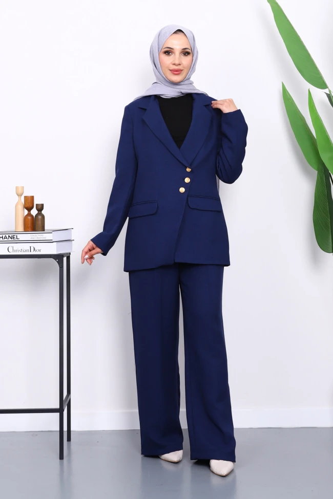 Siyah Düğmeli Ceket Pantolonlu Takım Mint Yeşili Düğmeli Ceket Pantolonlu Takım Mürdüm Düğmeli Ceket Pantolonlu Takım Haki Düğmeli Ceket Pantolonlu Takım