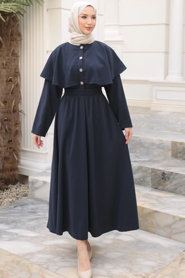 Vizon Düğmeli Pelerinli Gömlek Etekli Takım Siyah Düğmeli Pelerinli Gömlek Etekli Takım Kahverengi Düğmeli Pelerinli Gömlek Etekli Takım Haki Düğmeli Pelerinli Gömlek Etekli Takım