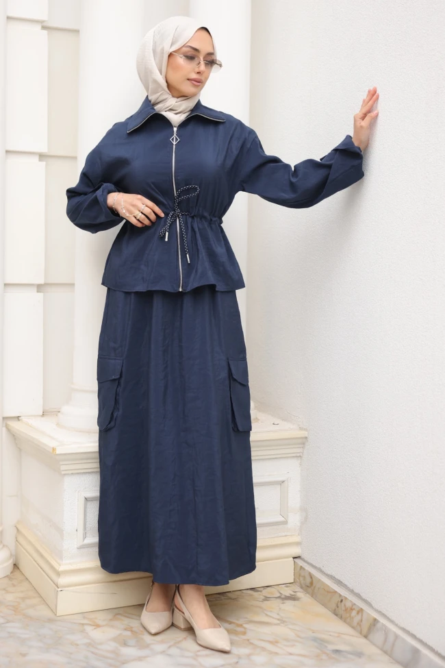 Vizon Fermuarlı Ceket Kargo Cepli Etekli Takım Siyah Fermuarlı Ceket Kargo Cepli Etekli Takım Kahverengi Fermuarlı Ceket Kargo Cepli Etekli Takım