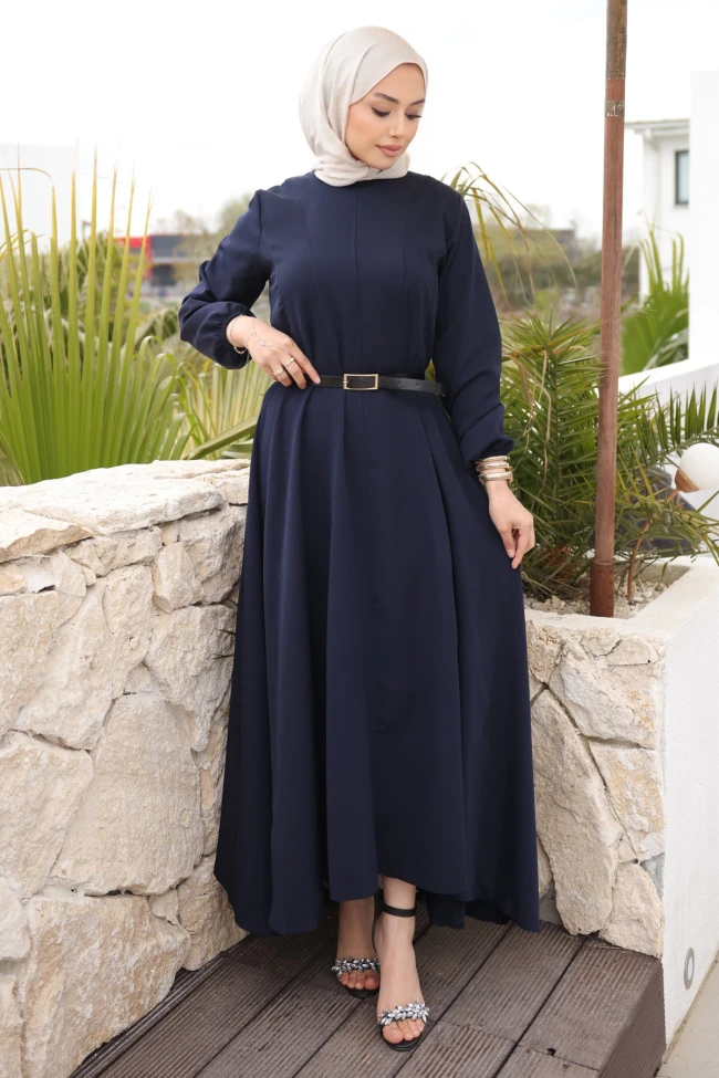 * Ürün Detay : Tek parça ile gelen zahmetsiz şıklık! Bu elbise, günün her saatinde kendinizi özel ve asil hissetmeniz için tasarlandı.Belden itibaren hafifçe genişleyen kloş kesimi, vücut hatlarını naifçe gizlerken zarif bir form sunar.Bilekleri lastikli hafif balon kollar, elbiseye modern ve romantik bir hava katar.Ön kısımdaki dikey dikiş detayları, boyu olduğundan daha uzun ve ince gösteren sihirli bir dokunuştur.Kemerlidir.