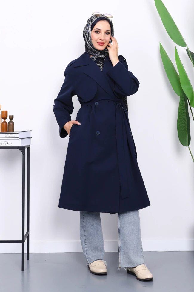 Taş Kravuze Yaka Kuşaklı  Cepli Trençkot Haki Kravuze Yaka Kuşaklı  Cepli Trençkot Bisküvi Kravuze Yaka Kuşaklı  Cepli Trençkot