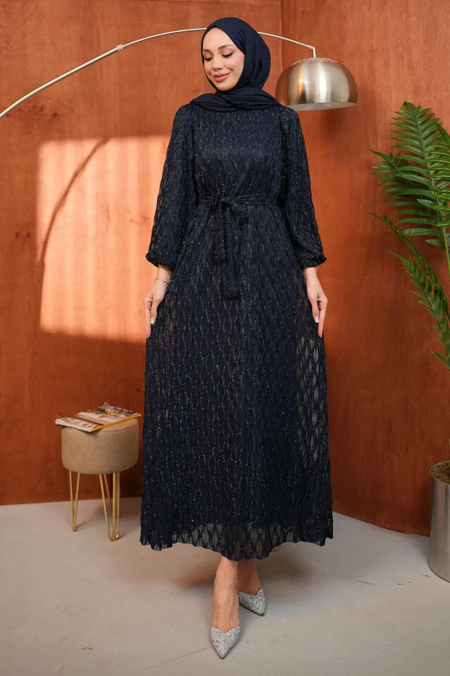 Siyah Kuşaklı Simli Abiye