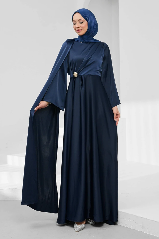 * Ürün Detay : Abiye, zarafeti ve asil duruşu ön plana çıkaran, oldukça şık bir tasarım.Belden aşağıya doğru süzülen etek kesimi, boyu olduğundan daha uzun ve silüeti daha ince gösteren bir yapıda.Bel hattındaki taşlı broş, elbiseye odak noktası kazandırmış. Sade tasarımı bir anda "gece kıyafeti" seviyesine taşımış.Bir tarafta pelerin etkisini andıran geniş kesim, modele asimetrik ve modern bir hava katmış. Modest stil ile yüksek modayı birleştiren bir detay.