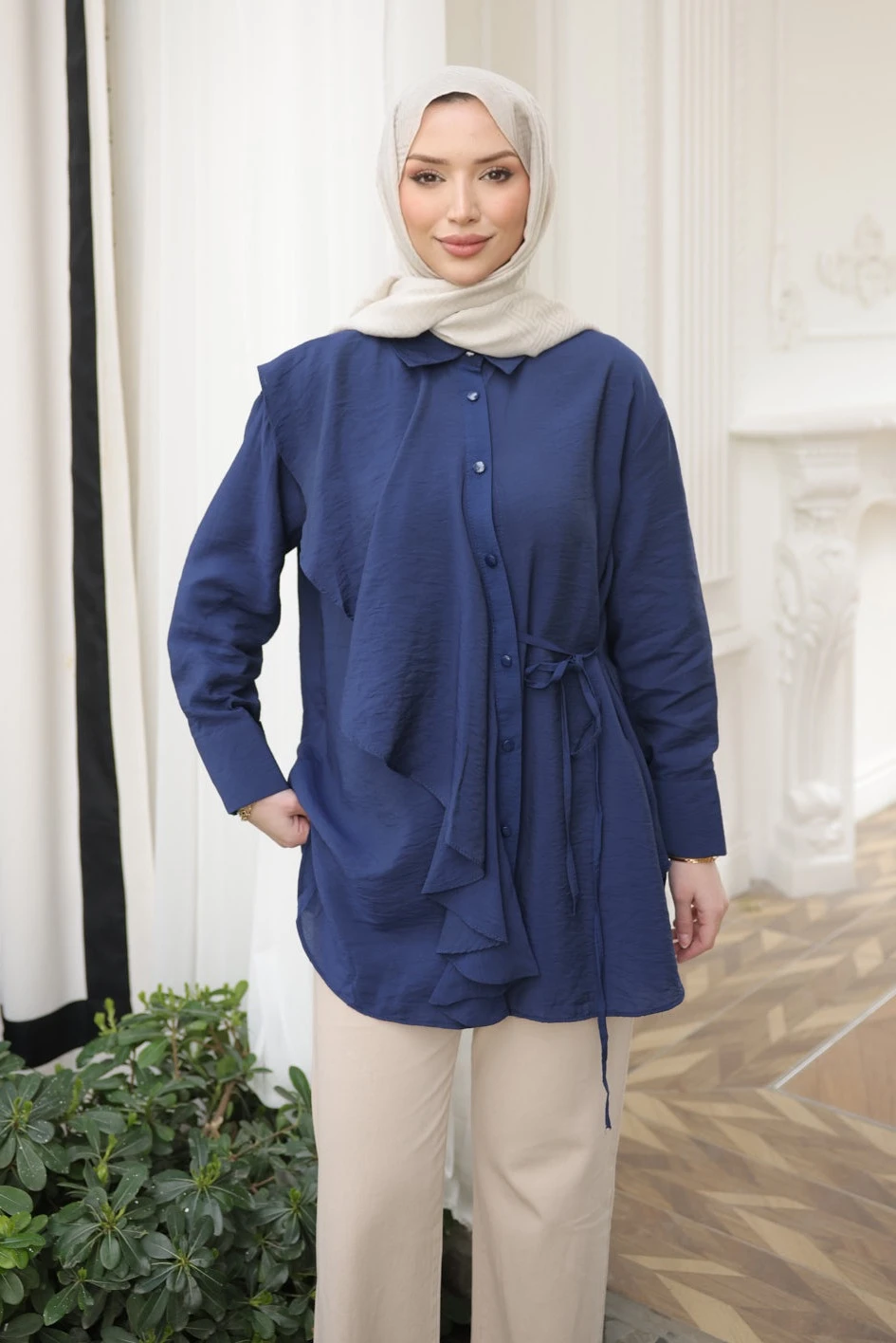 * Ürün Detay : Gömlek hem tasarımı hem de dokusuyla dikkat çeken bir parça.Omuzdan başlayıp gömlek boyunca uzanan volan detayı, klasiğin dışında, modern ve hareketli bir silüet oluşturuyor.