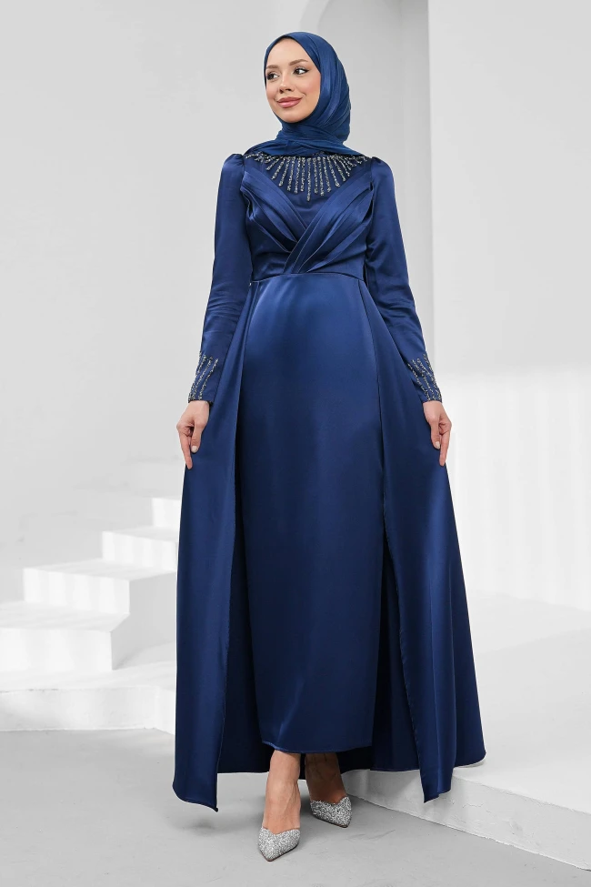 Bej Önü Taşlı Saten Abiye İndigo Önü Taşlı Saten Abiye Füme Önü Taşlı Saten Abiye