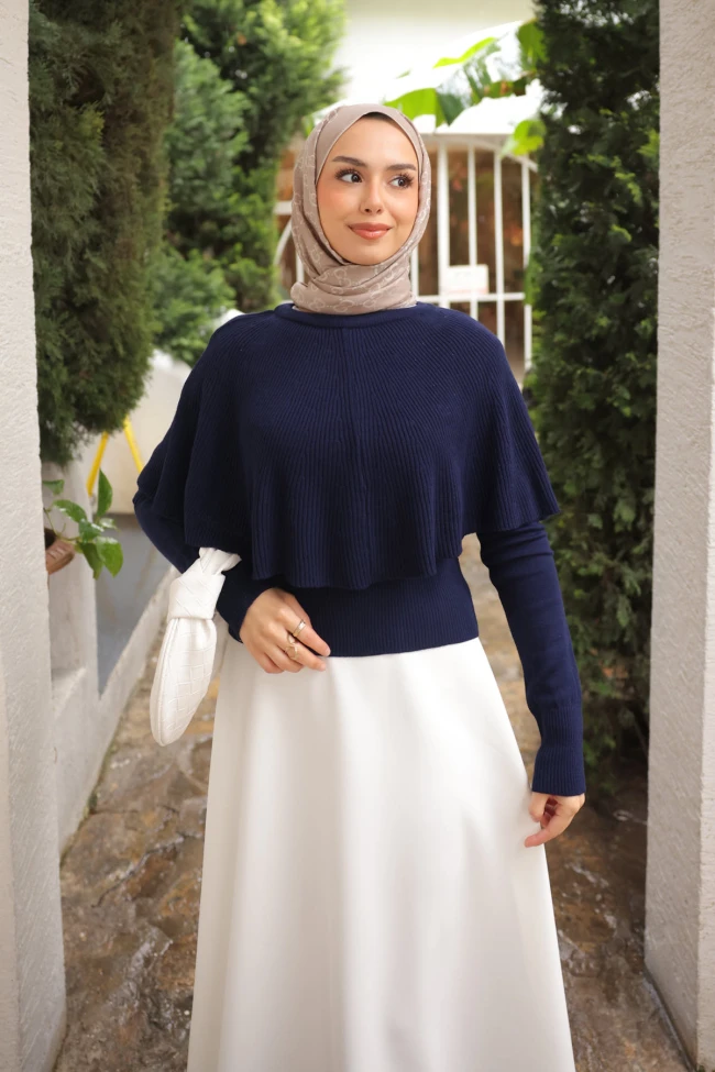 Siyah Pelerin Detaylı Fitilli Triko Kazak Ekru Pelerin Detaylı Fitilli Triko Kazak Kahverengi Pelerin Detaylı Fitilli Triko Kazak Bordo Pelerin Detaylı Fitilli Triko Kazak