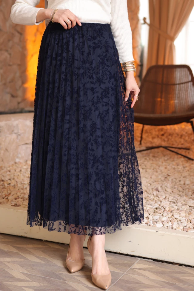 Siyah Piliseli Flok Baskılı Astarlı Tül Etek Yeşil Piliseli Flok Baskılı Astarlı Tül Etek Kahverengi Piliseli Flok Baskılı Astarlı Tül Etek