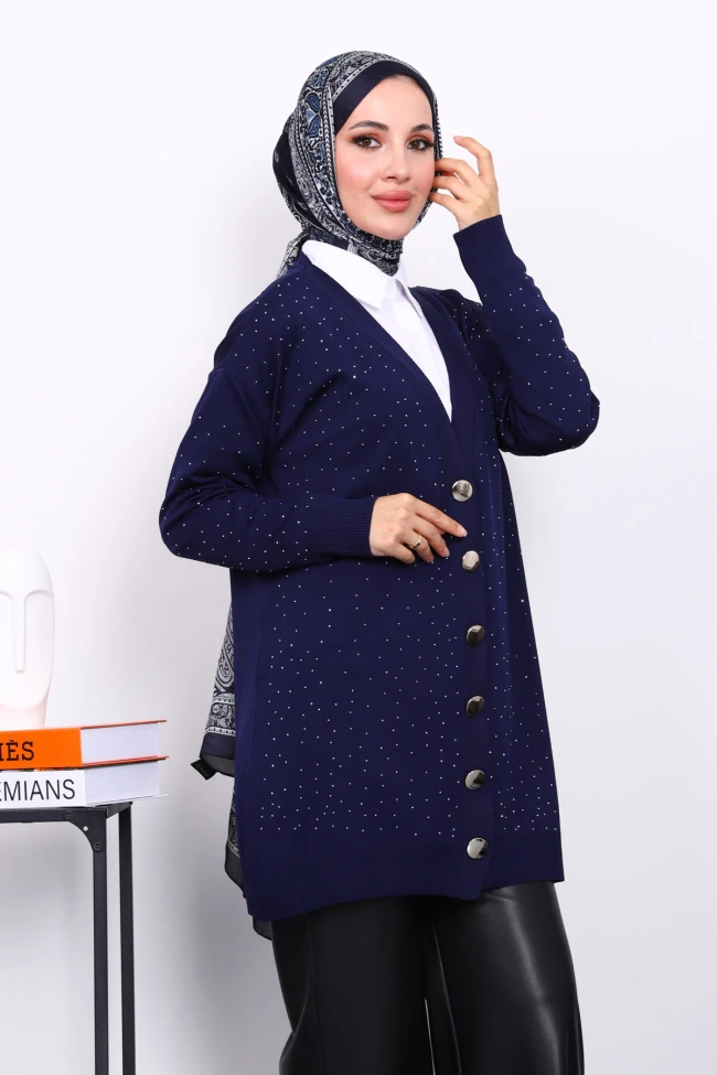 * Ürün Detay : Ürünümüz Soğuk İplik Merserize Triko Kumaştan Üretilmiştir. Ön kısmı düğmeli ve taş işleme detayı yer almaktadır.
