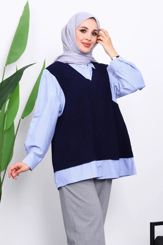 * Ürün Detay : Ürünümüz Triko Garnili Kumaştan Üretilmiştir. Triko yelek gömlek ile bütün şeklindedir.