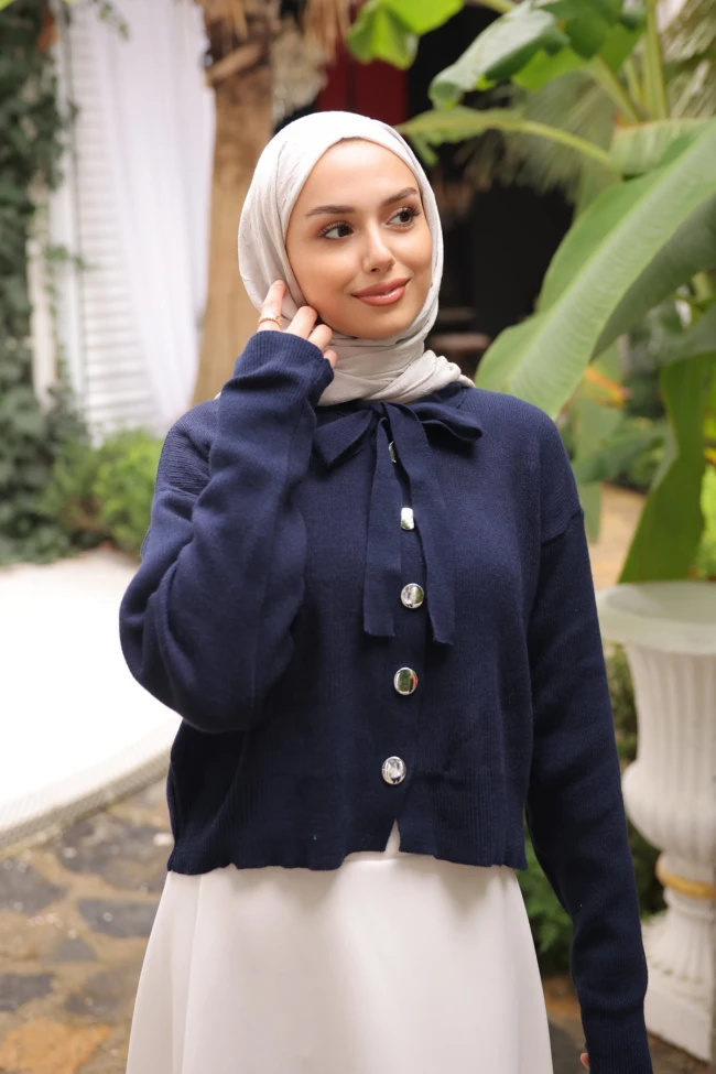 * Ürün Detay : Ürünümüz yeni sezona uygun Triko kumaştan üretilmiştir. Ön kısmı düğmeli olup, yaka kısmı bağlama detaylıdır.