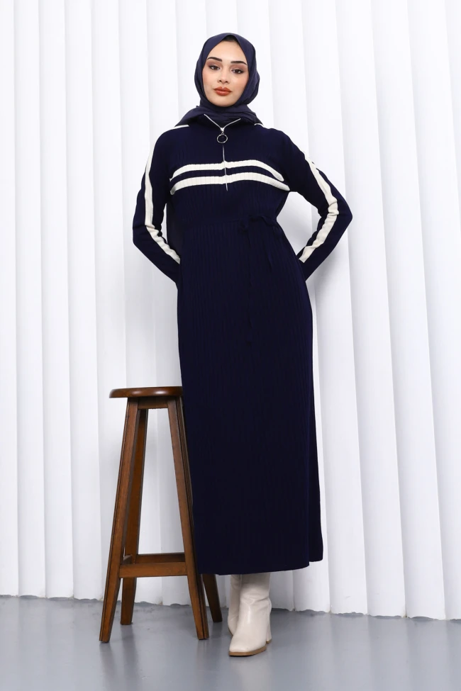 Siyah Yaka Fermuarlı Fitilli Çizgili Triko Elbise Füme Yaka Fermuarlı Fitilli Çizgili Triko Elbise Krem Yaka Fermuarlı Fitilli Çizgili Triko Elbise Bordo Yaka Fermuarlı Fitilli Çizgili Triko Elbise