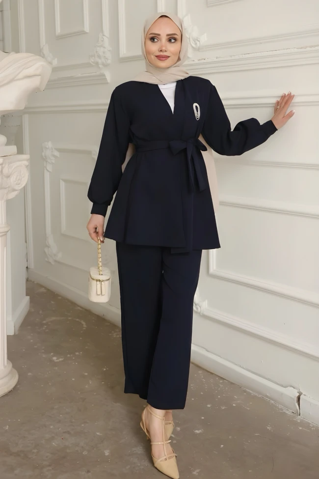 Siyah Yaka Taşlı Tunik Pantolonlu Takım Haki Yaka Taşlı Tunik Pantolonlu Takım Beyaz Yaka Taşlı Tunik Pantolonlu Takım Bordo Yaka Taşlı Tunik Pantolonlu Takım