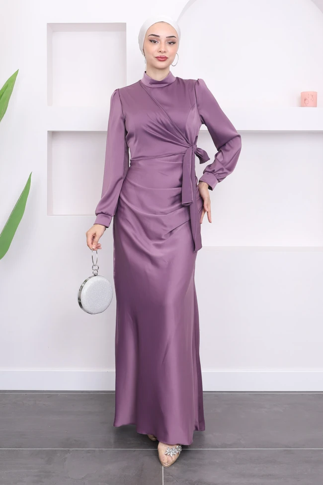 Gül Kurusu Ön Detaylı Drapeli Saten Abiye Bej Ön Detaylı Drapeli Saten Abiye Lacivert Ön Detaylı Drapeli Saten Abiye