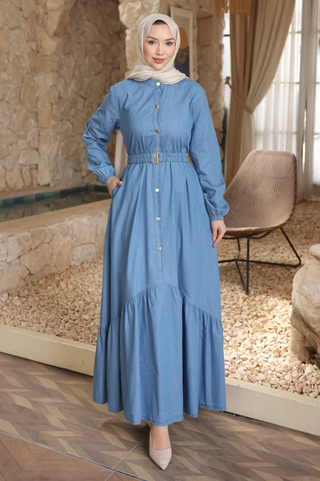 * Ürün Detay : Elbise, hem günlük şıklığı hem de konforu bir araya getiren, oldukça zamansız bir parça.Etek ucundaki geniş fırfır detayı, elbiseye hareket ve feminen bir enerji kazandırmış.Kendi kumaşından tokalı kemer kullanımı, bel hattını belirginleştirerek vücut formunu daha dengeli gösteriyor. Lastikli bel detayı ise kullanım konforunu artırıyor.Boydan boya uzanan metal düğme detayları dikey bir hat oluşturarak boyu daha uzun gösterirken, hakim yaka tercihi minimalist bir şıklık sağlıyor.