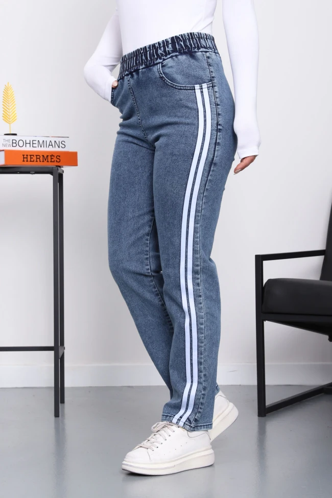 * Ürün Detay : Yan kısmındaki şerit detayları ne güzel bir dokunuş sağlamış ürünümüze. Yeni sezona uygun kot kumaştan üretilmiştir. Bel lastiklidir ve ceplidir. Renk seçeneği mevcuttur. İster spor ister klasik olarak kombininizi tamamlayabileceğiniz pantolonumuz mutlaka gardolabınızda yerini almalı.