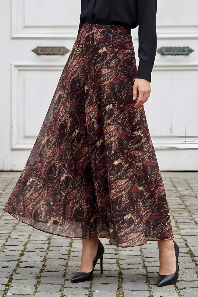 * Ürün Detay : Etek, klasik ve sofistike bir tarzı modern bir akışkanlıkla birleştiren oldukça şık bir parça.Üzerindeki şal deseni oldukça zamansız bir tercih. Karmaşık ve kıvrımlı yapısı, eteğe derinlik ve görsel bir zenginlik katmış.Etek, “sessiz lüks” akımına göz kırpan, hem ofis şıklığına hem de özel bir akşam yemeğine uyum sağlayabilecek çok yönlü ve asil bir parça.Etek belinin arka kısmı lastiklidir.Yandan fermuarlıdır.