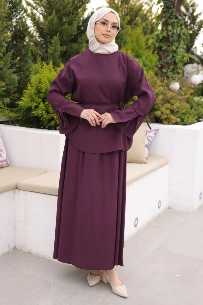 * Ürün Detay : Günün her anında çaba harcamadan gelen zarafet!Belden bağlama detayıyla vücut formunuzu zarifçe ön plana çıkaran tunik ve dökümlü eteğiyle bu takım, hem ofis şıklığı hem de özel davetler için vazgeçilmeziniz olacak. Şimdi stilinize asil bir dokunuş yapma zamanı!