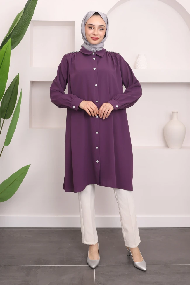 * Ürün Detay : Yeni sezona uygun Krep Kumaştan üretilmiştir. Omuz taşlıdır. Boydan düğme detayı bulunmakta olup gömlek yakadır.
