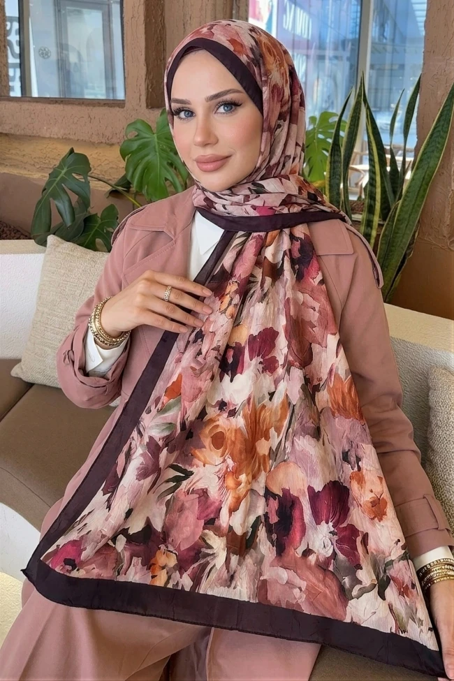 Vizon İpekhan Desenli Kraş Şal Haki/Vizon İpekhan Desenli Kraş Şal Mürdüm İpekhan Desenli Kraş Şal Kahverengi Bej İpekhan Desenli Kraş Şal