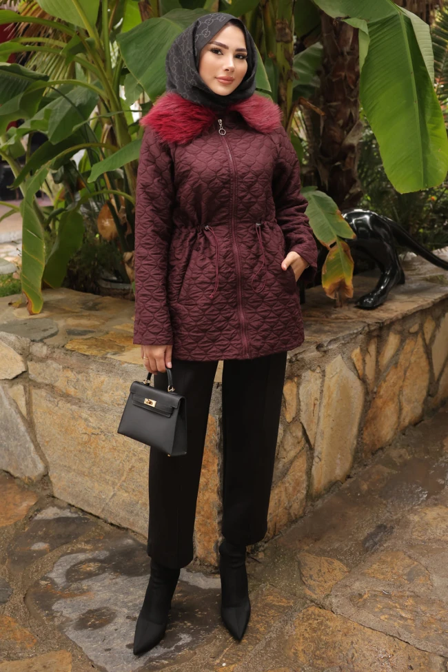Siyah Yaka Kürklü Kapitone Ceket Taş Yaka Kürklü Kapitone Ceket Kahverengi Yaka Kürklü Kapitone Ceket