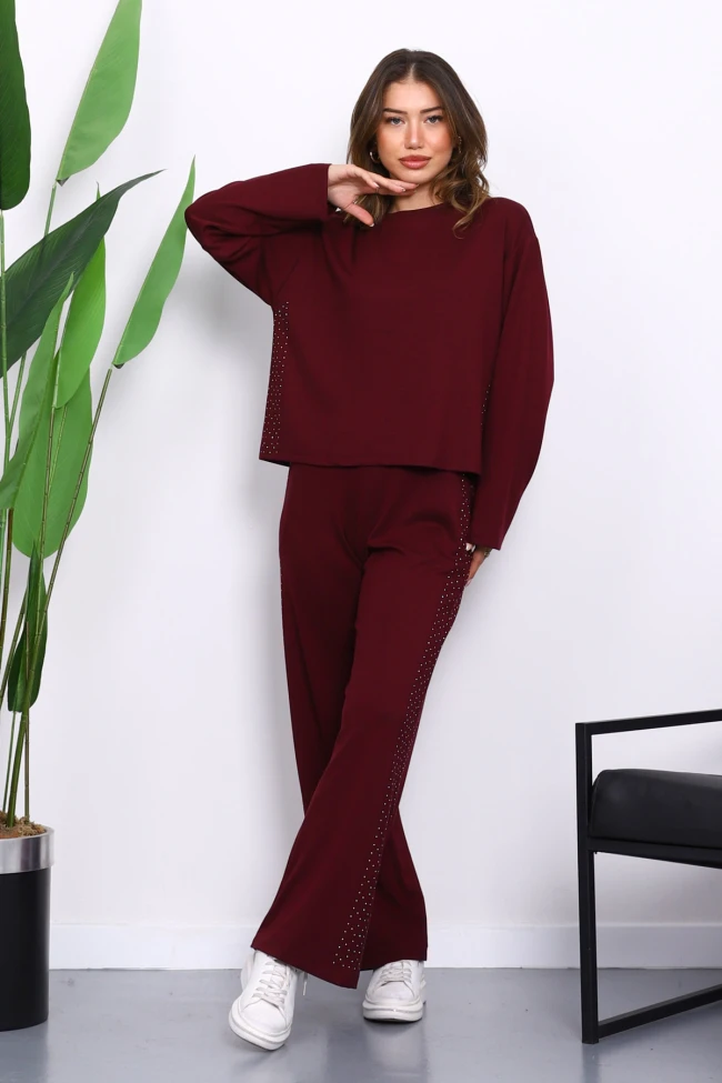 * Ürün Detay : Ürünümüz Modal kumaştan üretilmiştir. Sweat ile Pantolon ikili takım şeklindedir. Pantolon bel kısmı lastikli ve taş detayları yer almaktadır. Cep detaylıdır.