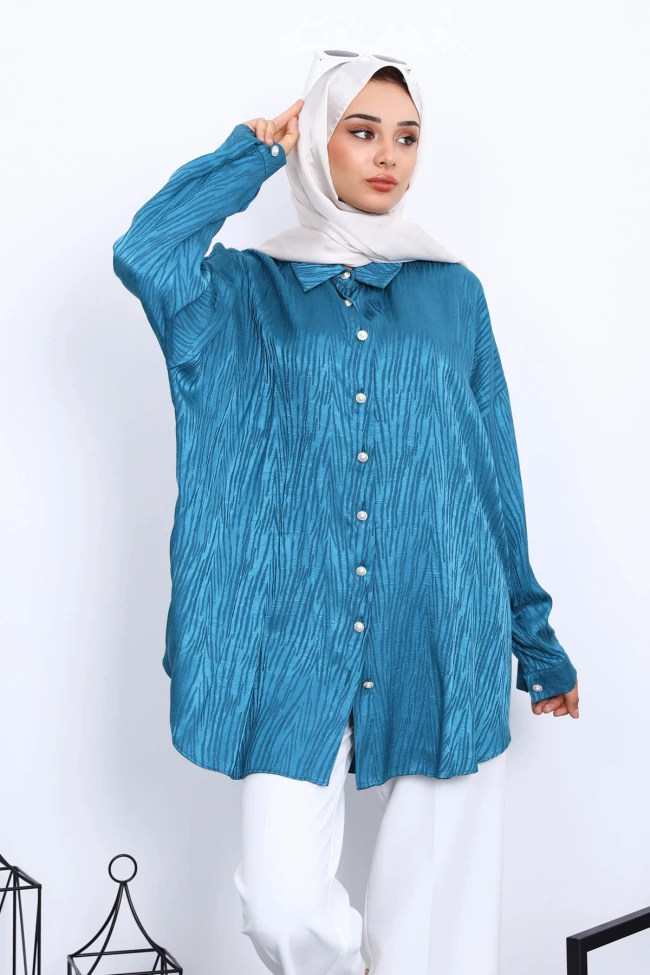 Lacivert Jakarlı Düğmeli Gömlek Mor Jakarlı Düğmeli Gömlek İndigo Jakarlı Düğmeli Gömlek