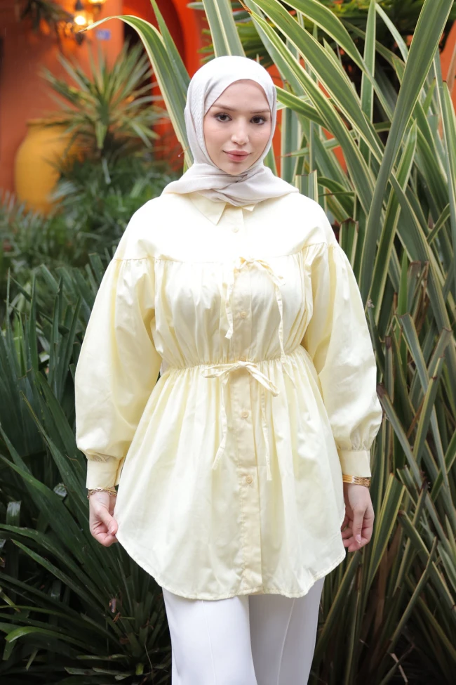 * Ürün Detay : Yeni sezonun en sevilen modellerinden olan gömlek modelimiz renklerin en güzel tonlarıyla buluşuyor. Sezona uygun terikoton kumaştan üretilmiştir. Bel ve göğüs kısımlarında bağcık detayları mevcuttur. Beli lastiklidir ve boydan düğmelidir.