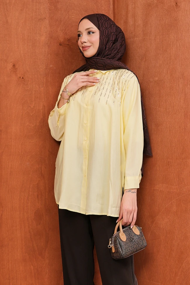 Siyah Boncuk İşlemeli Gömlek Lacivert Boncuk İşlemeli Gömlek Mürdüm Boncuk İşlemeli Gömlek Kahverengi Boncuk İşlemeli Gömlek